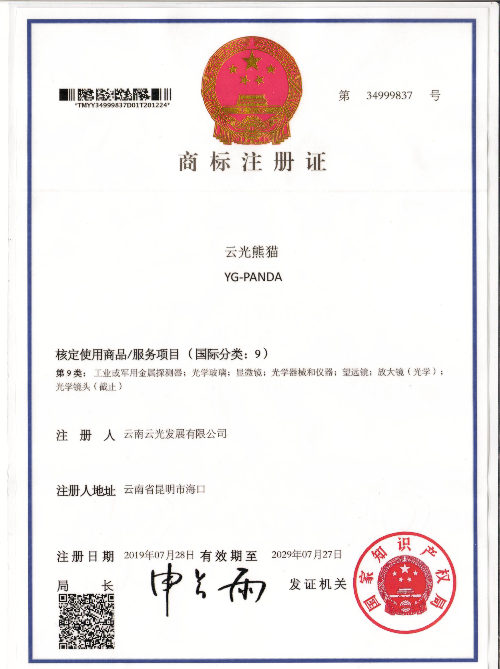 商標(biāo)證書